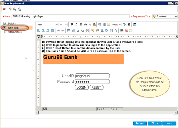 Step 9) Requirements also allows users to enter the requirements in 'Rich Text' format directly as shown below.
