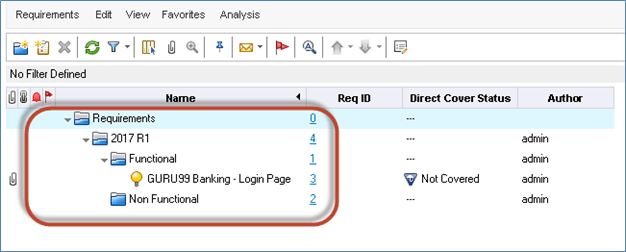Step 5) The Created Folder will be displayed in 'Requirements' module as shown below.