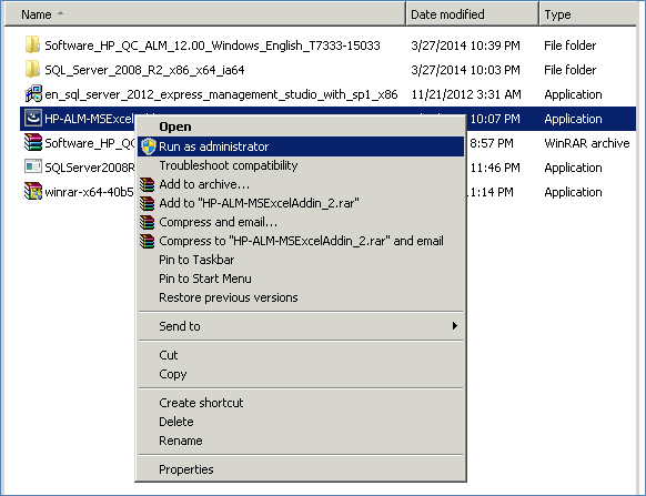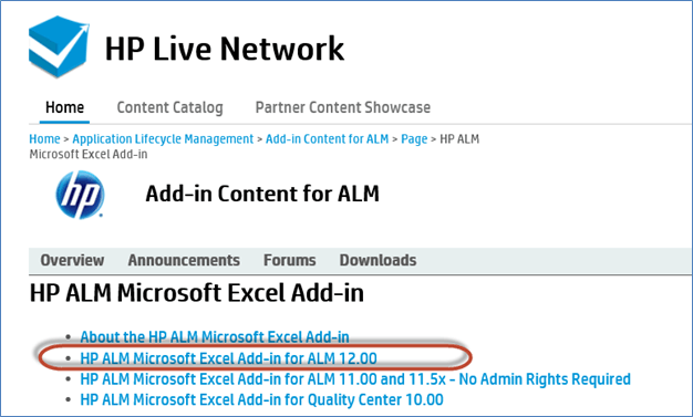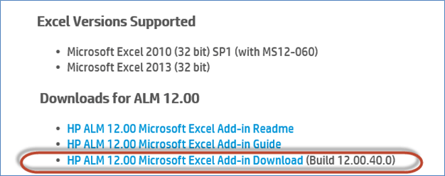 Step 4) Select HP-ALM Microsoft Excel Add-in for ALM 12.00 link. Users can also refer to the 'Read-me' Guide and 'Add-in' Guide. Upon clicking on the link, the add-in set up file will be downloaded to default location/user selected location.
