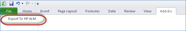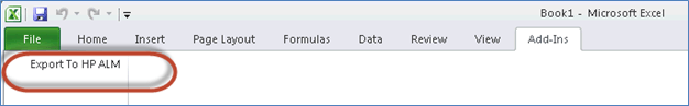 Step 5) To verify if the add-in got successfully installed, open Excel and navigate to 'Add-ins' Tab. You will find an option 'Export to HP ALM' which means the 'add-in' got installed successfully.