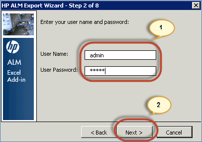Step 3) The ALM Export Wizard opens. Enter the HP ALM Server URL and Click 'Next'.