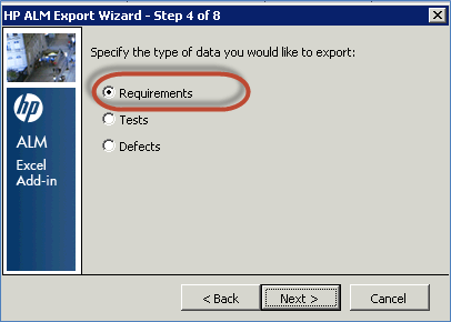 Step 4) Select the type of data that we would like to upload. In this case, it is requirements. We can also upload Tests/Defects which we will deal with it later.