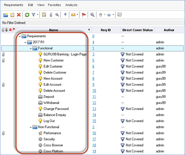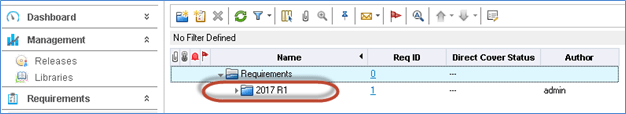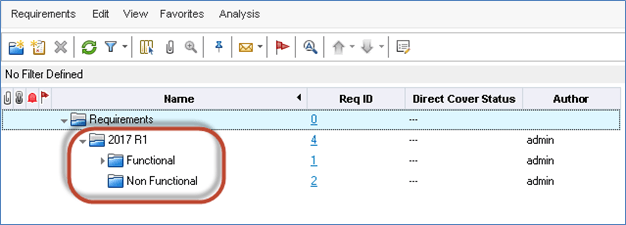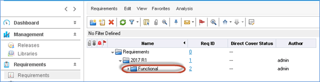 Step 2) Let us maintain all the requirements for this release(2017 R1) in a specific folder so that it would be easy for us to access. In addition to that we would like to show the distinction between 'Functional' and 'Non Functional' requirements by placing them in different folders.