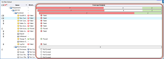 Step 2) The coverage Analysis will be generated against each one of the requirements placed under 'Requirement Tab' with consolidated status on a folder level.