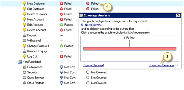 Step 5) Uponclicking 'Show Test Coverage', the test execution status against the selected requirement will be displayed.