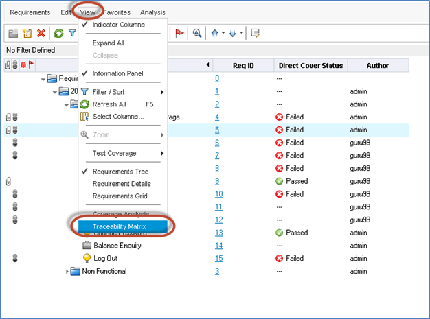 Step 1) First Step is to navigate to 'View' Menu and select 'Traceability Matrix'.