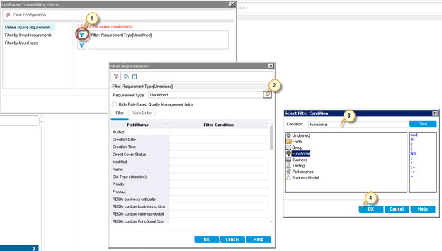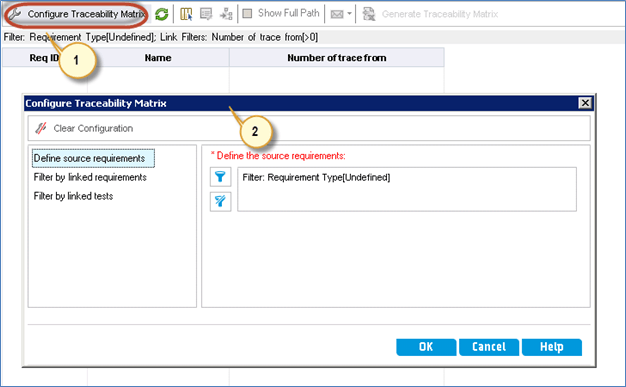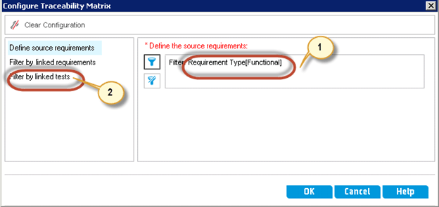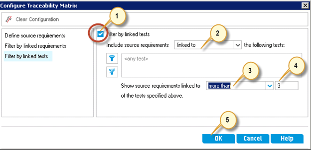 Step 6) Let us generate the traceability matrix between requirements and tests. Hence upon clicking on 'Filter by linked tests', the following dialog is displayed to the user.
