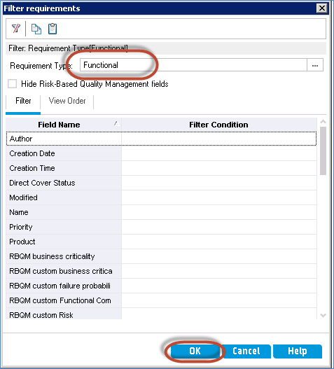 Step 4) The Filter requirement dialog displays the filter criteria as selected by the user. Click 'OK'.