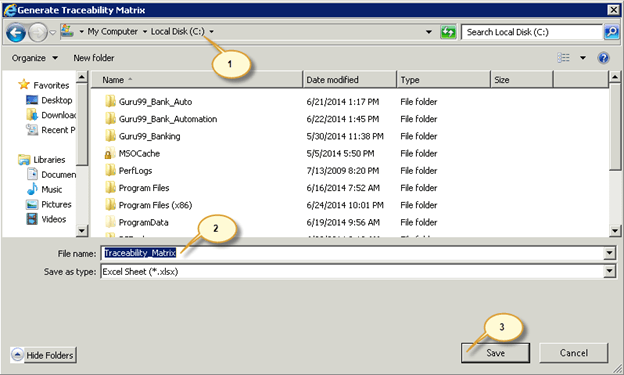 Step 10) Upon clicking 'Save' Button, the traceability matrix is generated to the user.