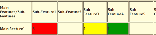 For a larger project where features and functionalities are more then above table may not be of any use. In such case, another approach is adopted, where developer straightaway marks the level of influence due to the changes in main features. As shown below where the impact of the Main feature is marked for respective sub-features.