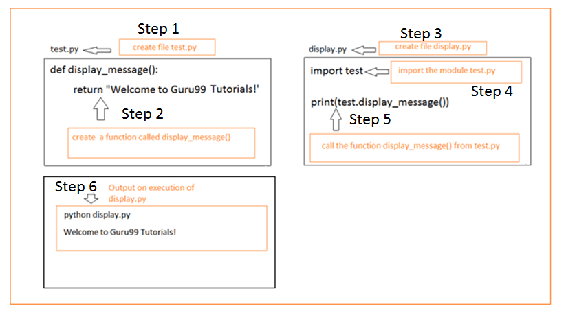 Then you can call the function display_message() from test.py inside display.py, you need to make use of module_name.function_name.