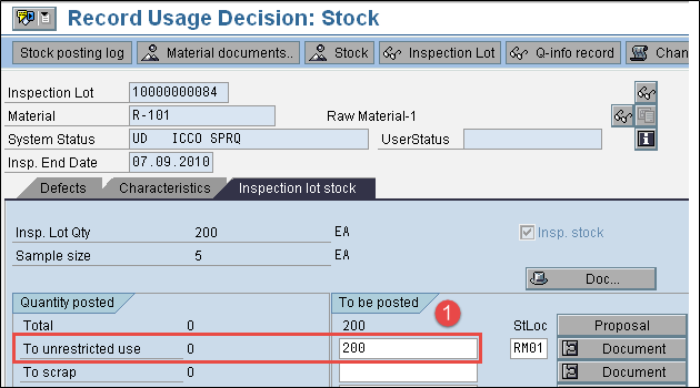 Here, we will do usage decision against inspection lot whether the lot is accepted or rejected and move the stock from quality inspection.