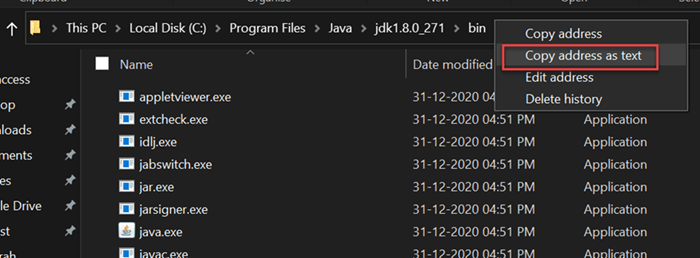 Step 6) Copy the path of bin folder which is installed in JDK folder.