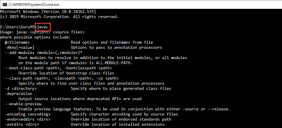 Step 10) Go to command prompt and type javac commands.