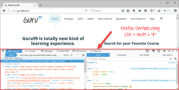 Firefox DevTools is a Firefox feature that we will use to inspect the HTML elements of the web application under test. It will provide us the name of the element that our Selenese command would act upon.