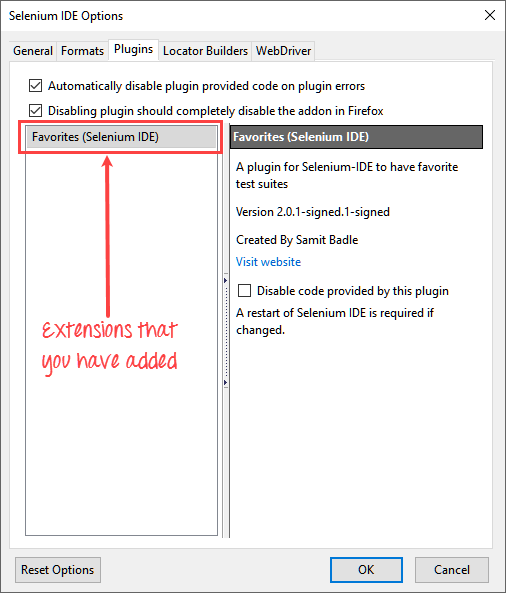 These four plugins are required by Selenium IDE to convert Selenese into different formats.