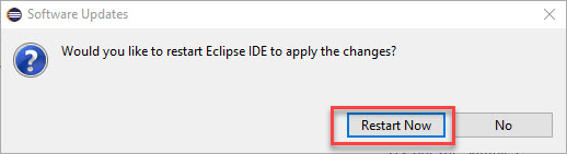 Step 8) Wait for the installation to finish. When Eclipse prompts you for a restart, click "Restart now."