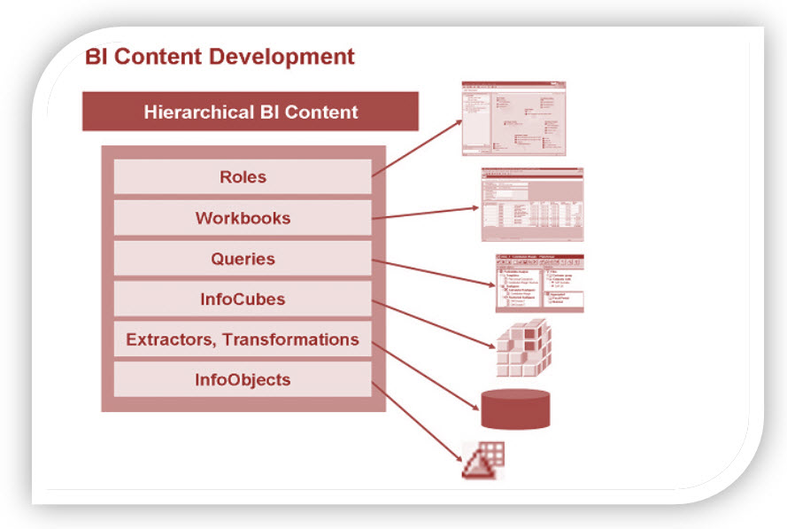 BI Content provides selected roles within a company with the information that they need to carry out their tasks. SAP NetWeaver Business Warehouse delivers pre-configured authorization objects under the collective term BI content. To understand this we take an example of a sales manager, who wants all the information like sales, market share, product quality, sales and service cost etc… to enable him to make effective decision. A BI content role will bring all this data together in the form of workbooks and queries carrying exactly the information the sales manager needs. No sensitive & confidential information from the HR department are shown to him