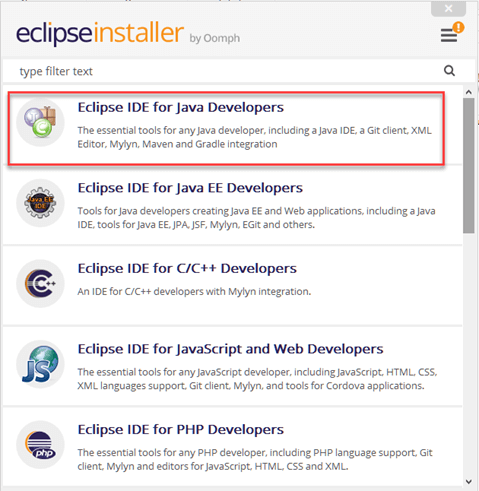 Double-click on file to Install the Eclipse. A new window will open. Click Eclipse IDE for Java Developers.