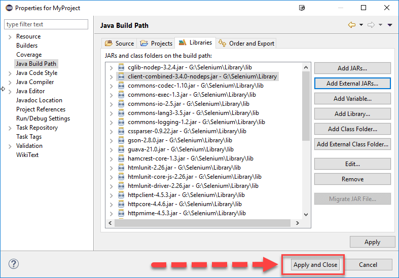 7. Finally, click OK and we are done importing Selenium libraries into our project.