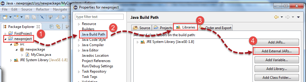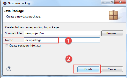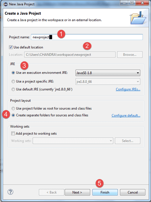 3. Create a new project through File > New > Java Project. Name the project as "newproject".