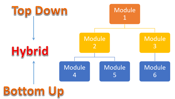 Sandwich Testing is a strategy in which top level modules are tested with lower level modules at the same time lower modules are integrated with top modules and tested as a system. It is a combination of Top-down and Bottom-up approaches therefore it is called Hybrid Integration Testing. It makes use of both stubs as well as drivers.