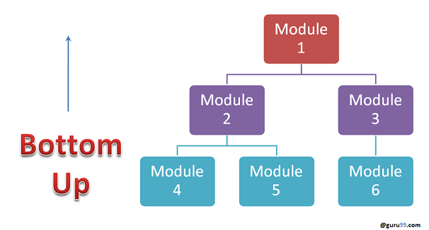 Bottom-up Integration Testing is a strategy in which the lower level modules are tested first. These tested modules are then further used to facilitate the testing of higher level modules. The process continues until all modules at top level are tested. Once the lower level modules are tested and integrated, then the next level of modules are formed.
