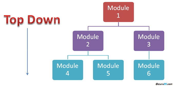 Top Down Integration Testing is a method in which integration testing takes place from top to bottom following the control flow of software system. The higher level modules are tested first and then lower level modules are tested and integrated in order to check the software functionality. Stubs are used for testing if some modules are not ready.