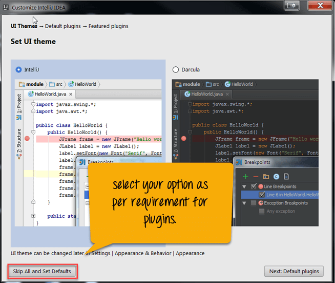 Step 9) If you already have an older version of IntelliJ installed in your system. You can import setting from older version to the newer version. Since we don't have any previous version installed. We will select the second option.