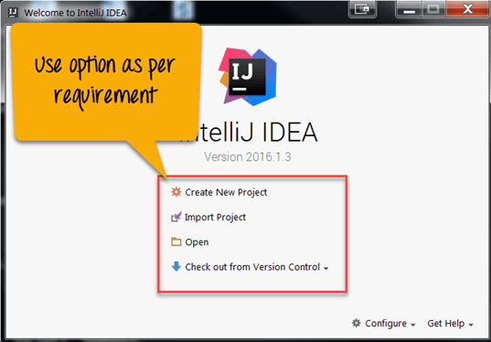 Step 12) In next step, select the option as per requirement. You will see options like create a new project, import project, open, etc.