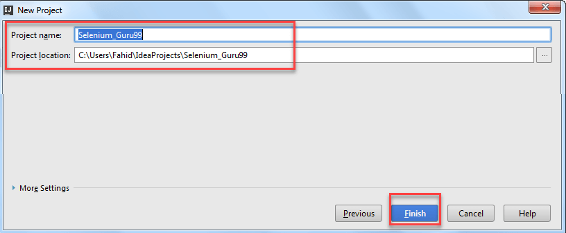 Step 2) In the previous step when you Click -> Next. A new screen will open. In this screen, give project name. In our case, we have given name Selenium_gtupapers. Then Click -> Finish. Your project has been created in IntelliJ.