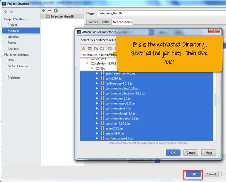 Step 3) Now You need to add the Selenium's .jar files into intelliJ as external libraries.