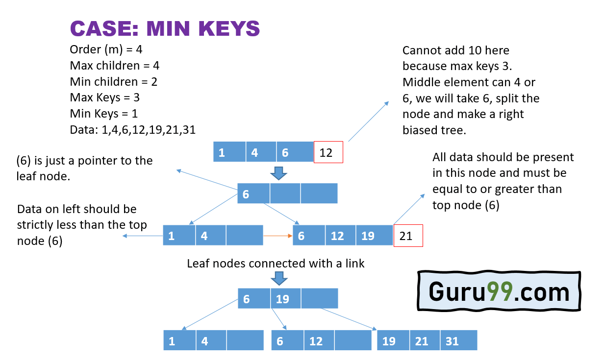 A B+ Tree is primarily utilized for implementing dynamic indexing on multiple levels. Compared to B- Tree, the B+ Tree stores the data pointers only at the leaf nodes of the Tree, which makes search more process more accurate and faster.