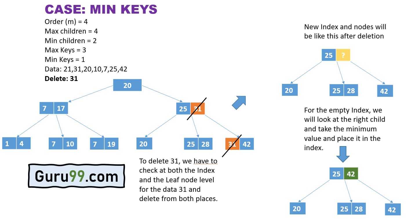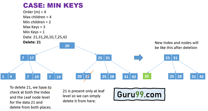 The example above illustrates the procedure to remove an element from the B+ Tree of a specific order.