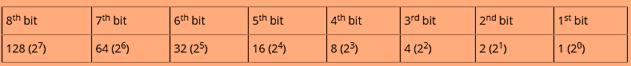 Now since you are familiar with the value of each bit in a byte. The next step is to understand how these numbers are converted to binary like 01101110 and so on. Each digit "1" in a binary number represents a power of two, and each "0" represents zero.