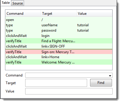 - The Table View shows your script in tabular format with "Command", "Target", and "Value" as the columns.