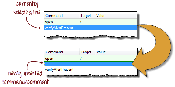 - The newly inserted command or comment will be placed on top of the currently selected line.