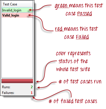 - At the bottom portion is a summary of the number of test cases that were run and failed.