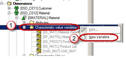 - To create a variable, browse to the folder called “Characteristic Value Variables” under the corresponding characteristic.