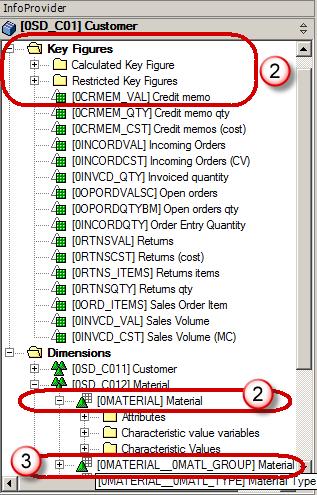 - Key Figures : Key Figures represent the numerical data or the KPIs(Key Performance Indicator). They are further divided into Calculated Key Figures (CKF) and Restricted Key Figures (RKF).