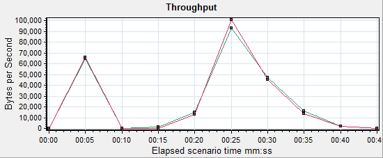Below is an example where bandwidth could be creating a bottleneck. Let's say Web server has 1GBps capacity whereas the data traffic exceeds this capacity causing subsequent users to suffer. To determine system caters to such needs, Performance Engineer needs to analyze application behavior with an abnormal load. Below is a graph LoadRunner generates to elicit bandwidth.