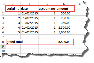 Make the columns bold, add the grand total and use the SUM function to get the total amount.