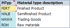 So material type is assigned to materials that have the same basic settings for material master views, price control, item category group and few other. Material Type can be assigned during the creation of the material in t-code MM01 (covered in detail later)