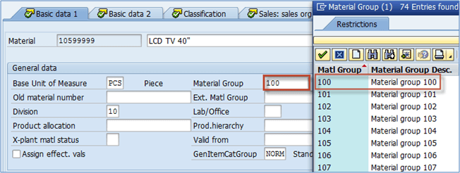 On the other hand, material group is mainly used in PP and MM module.
