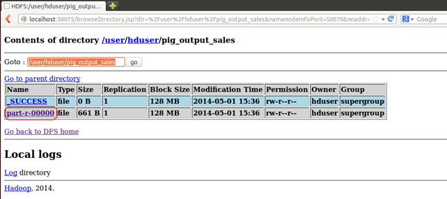 Now select 'Browse the filesystem' and navigate upto /user/hduser/pig_output_sales
