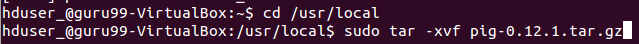 Step 2) Once a download is complete, navigate to the directory containing the downloaded tar file and move the tar to the location where you want to setup Pig Hadoop. In this case, we will move to /usr/local