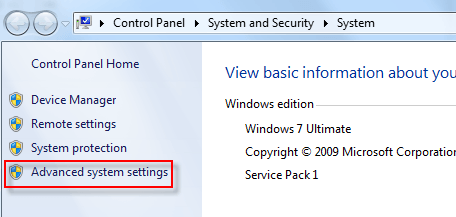Step 1) On Window, right-click Computer -> Properties -> Advanced System Setting