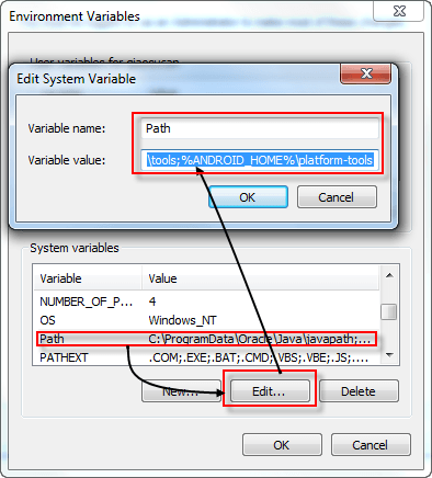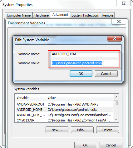 Step 3) The Environment window display, click New -> Enter a variable ANDROID_HOME as following