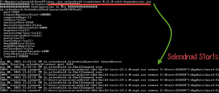 After this time our expired, if the emulator cannot start, the Selendroid will throw the exception error (Error occurred while looking for devices/emulators.) then stop running