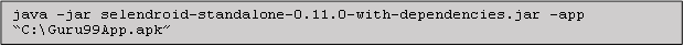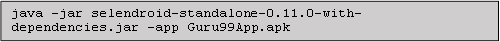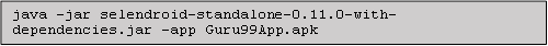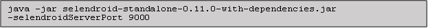 This section introduces you some basic Selendroid-Standalone command line. You may use them to set up the Selendroid testing environment